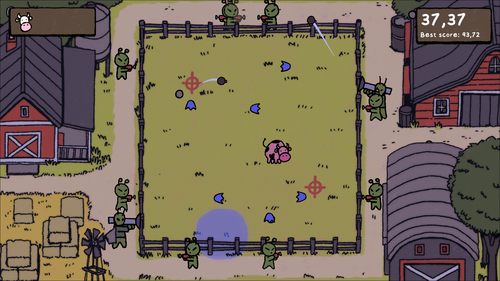 Tags | 2D, abduction, Aliens, Arcade, Bullet Hell, cow, Cute, Game Jam, Hand-drawn, No AI |
